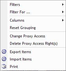 Proxy Access and User Properties are interfaces for manipulating system-wide proxy rights as well as general properties for users. These will be demonstrated in the application section.