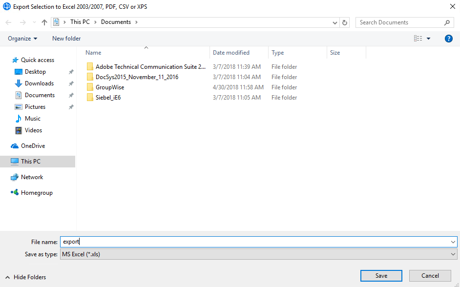 Then choose which file type you wish to export the data to, (PDF, XML, XPS, or TXT), and select the desired name and location to save the data. GroupWise Mailbox Management will attempt to open the newly created file with the appropriate program.