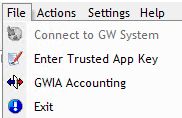 Once you are connected go to 'File - Enter Trusted App Key'.