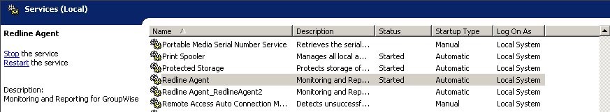 If you installed Redline as a service, the agent is not started. It is important to start the agent manually after installation. To start Redline as a service, start it from the Windows Services interface.