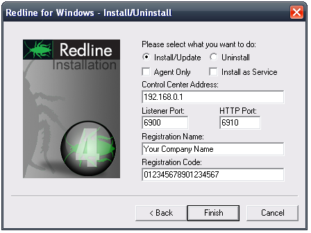 Select the components to install / Update and click Finish. Optional: you can select to install Redline as a Windows Service.