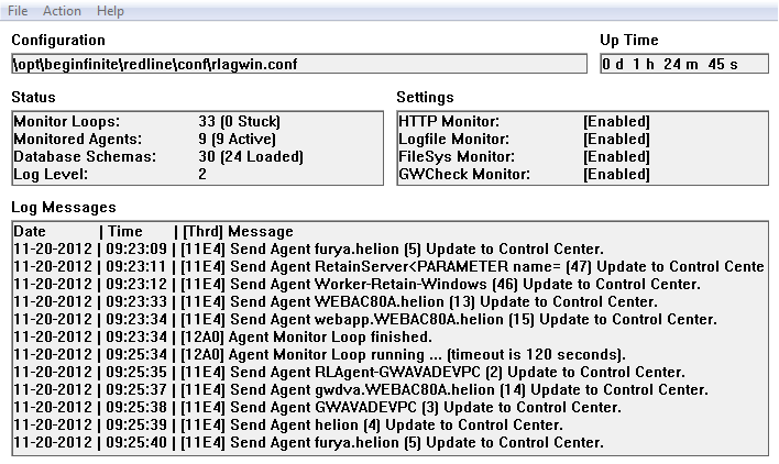 The Agent and Control Center screens on Windows show up with all the log entries, like the Linux screens.