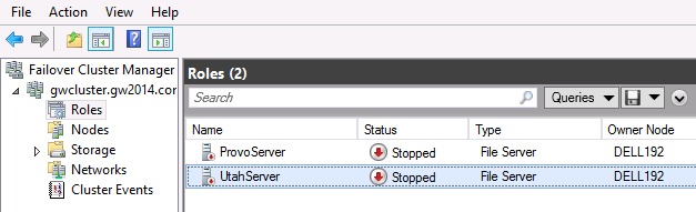 The following example shows two Cluster Roles, ProvoServer and UtahServer.