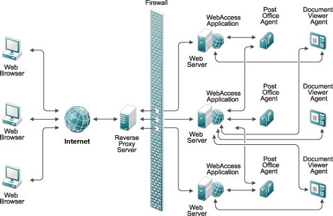 In a larger GroupWise system, you can install the WebAccess Application to multiple Web servers.
