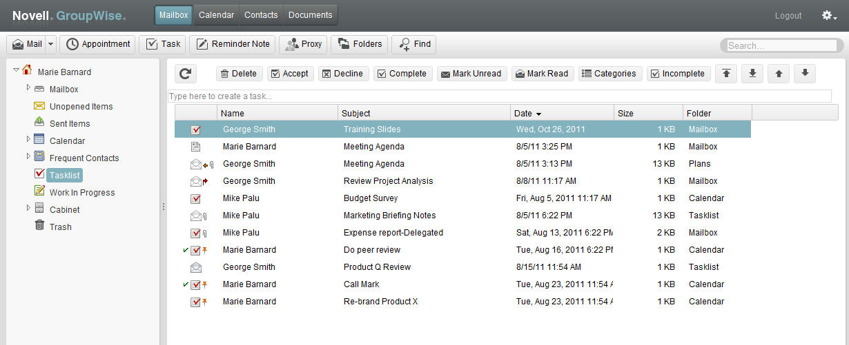 Figure 5-1 Mailbox Showing the Tasklist Folder