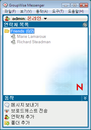 아이콘을 클릭합니다. Novell Messenger 대화 창이 열립니다.