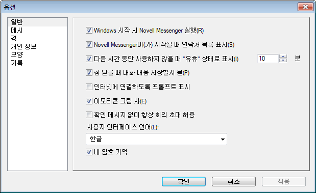중요:Messenger 기능을 GroupWise에서 사용할 수 있게 하려면 Novell Messenger를 사용자의 워크스테이션에 설치해야 합니다.