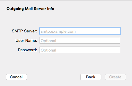 Specify the SMTP server, your user name, and password.
