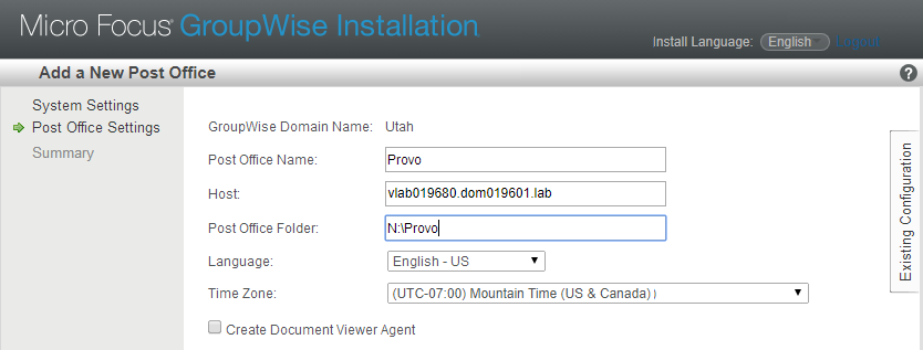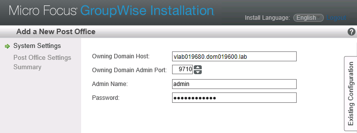 NOTE:As an alternative to creating the post office in the GroupWise Installation console, you can create the post office in the GroupWise Admin console. Online the post office Cluster Role to the same node where the owning domain Cluster Role is running. Then follow the instructions in Creating a New Post Office on an Existing Domain or Post Office Server