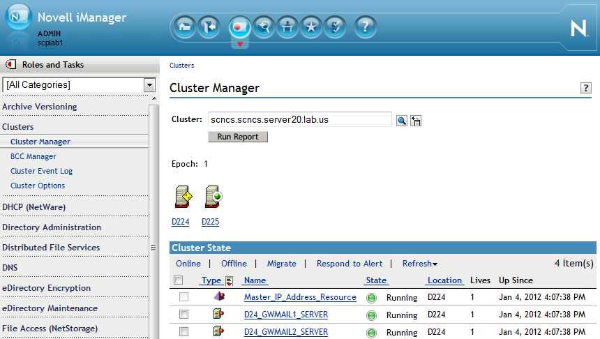 After a moment, the Messenger cluster resource displays Running in the State column.
