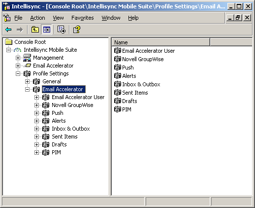 Email Accelerator controls are included in the Intellisync Mobile Suite control if you have Email Accelerator installed on your server.