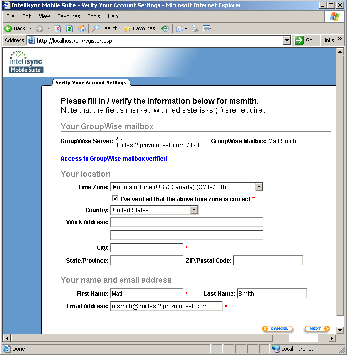For non-domain users, make sure the user exists in the alternate source or is in the Intellisync Mobile Suite control.
