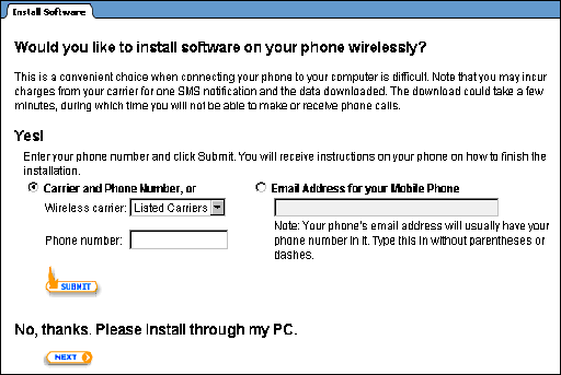 The installation process is similar to the previous process, although you now have the option to install the client software over the air, as shown in the following figure.