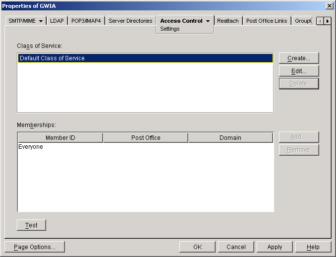 Inherit Access: Select this option if you want members of this class of service to inherit their IMAP4 access from a class of service assigned at a higher level. For example, a post office would inherit the domain's access. If the domain was not a member of a class of service, the post office would inherit the default class of service.