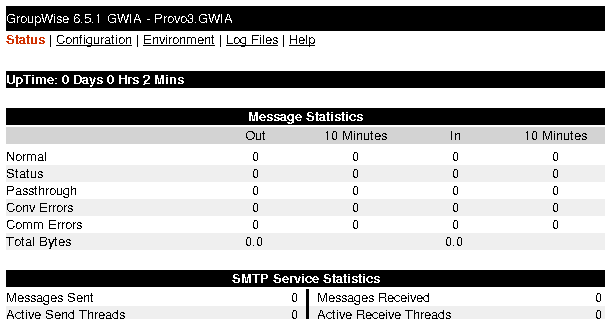 After you have started the Internet Agent, verify that the program is running. You can monitor the program at the Internet Agent server console that displays on the NetWare server console. Press F10-Options, then press F9-Stats. If you see an error message in the Statistics window, the program has not loaded properly.