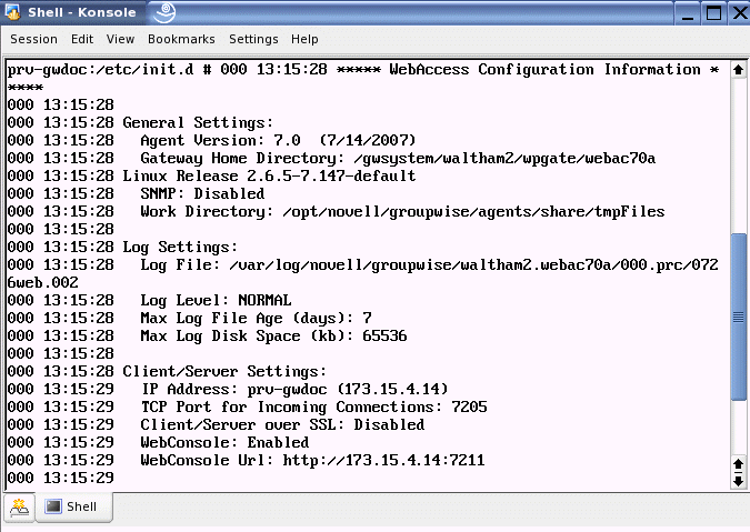 By default, the Linux Agent runs as a daemon with no user interface. To display information on the server where the WebAccess Agent runs, you must start the WebAccess Agent with the --show startup switch. The console is displayed in a terminal window.