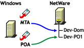 Figure 11-10 A Domain on a NetWare Server and the MTA on a Windows Server