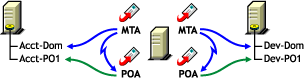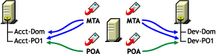 Figure 11-7 Agent Software on a Different Server than the Domain and Post Office