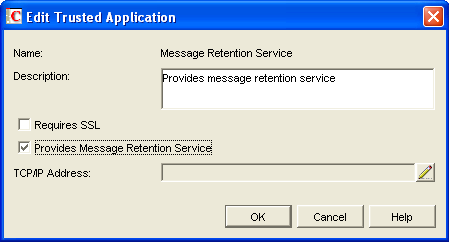 Figure 33-1 Edit Trusted Application Dialog Box with the Provides Message Retention Service Setting Turned On