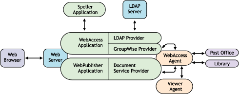 GroupWise® WebAccess consists of a number of components. The GroupWise 7 Installation Guide presented a simple overview of those components: