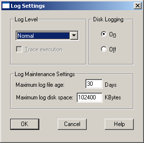 Disk Logging: Select or to enable or disable logging of information to log files.