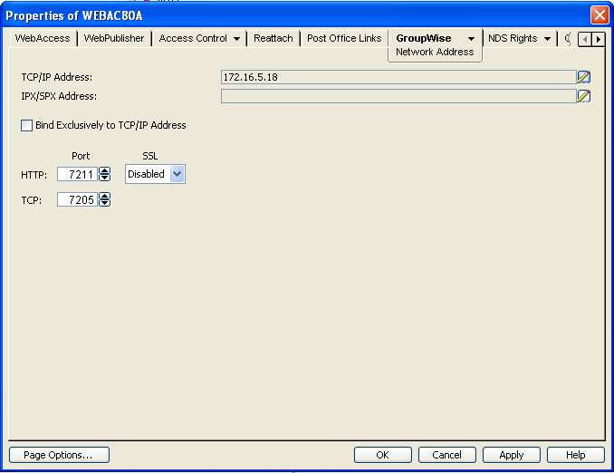 Figure A-4 WebAccess Agent Network Address property page in ConsoleOne