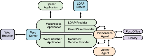 GroupWise WebAccess consists of a number of components. The GroupWise 8 Installation Guide presented a simple overview of those components: