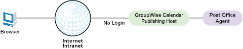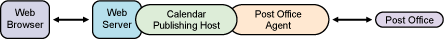 Calendar Publishing Host: The Calendar Publishing Host, which resides on the Web server, provides the browser interface for users across the Internet. As users request calendar and free/busy information from GroupWise users, the Calendar Publishing Host passes the information between the Web browser and the POA.