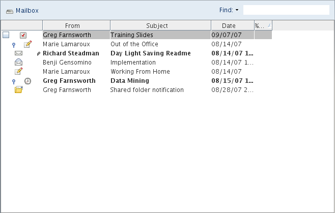 You can sort the messages in a folder into groups by using Group Labels. Group Labels group the messages according to the column that is being sorted. For example, the message list default sort is by the date, so the Group Label default is also by date. Messages are sorted by the day they are received. You can set a Group Label for each folder.