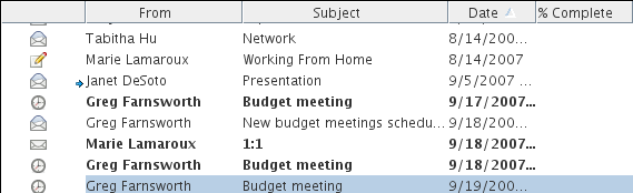 The Item List in a folder is divided into columns. Each column displays information about the items in the list. For example, different columns display the subject of items, the date they were sent, and so forth. You can customize the column display for each folder.