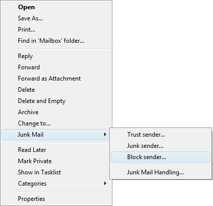 Section 3.6.2, Blocking or Junking All E-Mail from a Particular User