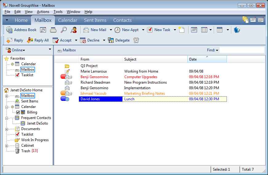 Figure 2-1 Mailbox Showing Items With Categories