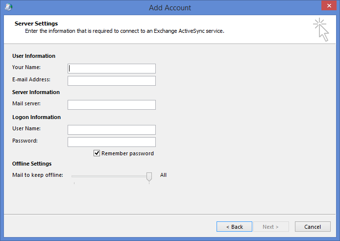 Mail Server: The GroupWise Mobility Server name or IP address (for example, gms.acme.com).