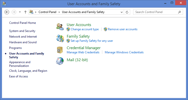 On the machine, open Control Panel > User Accounts and Family Safety.