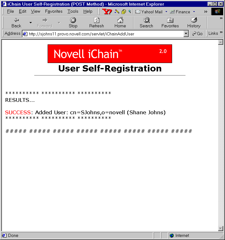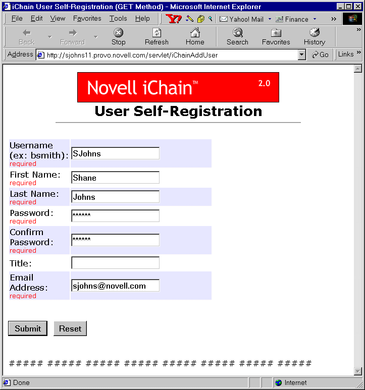 This servlet enables Web-based user self-registration, as shown in Figure 7 and Figure 8.