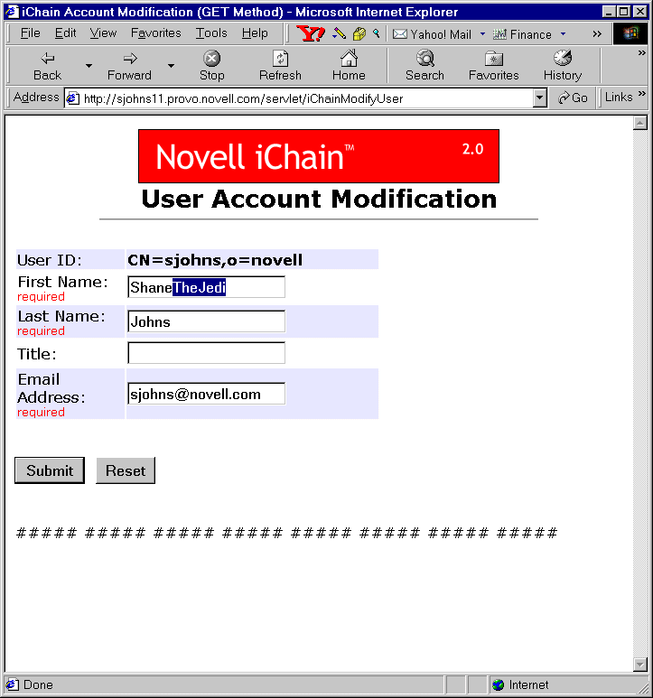 This servlet enables Web-based user account modification, as shown in Figure 9 and Figure 10: