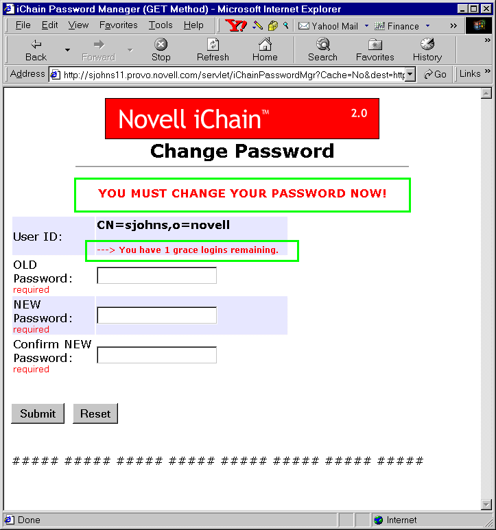 If the grace logins are greater than 1, the user will have the option to bypass the password change screen. If the grace login equals 1, the user will be forced to change his or her password before continuing on. See Figure 13.