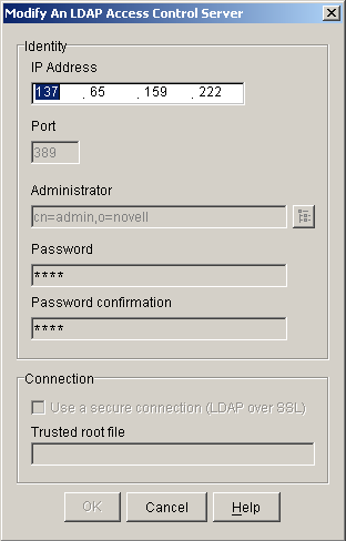 When you add the first entry in the table, all the fields are active. For the second and subsequent entries, only the IP address field is active. This forces all of the servers to be located within the same NDS tree.