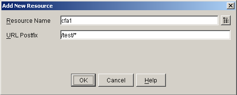 The Add New Resource dialog box allows the user to specify a resource to be added to the Allowed URL or Excluded URL lists. The Modify Existing Resource dialog box is exactly the same except for the dialog title. See Figure 45.