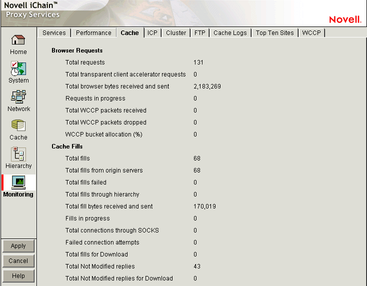 Total Fills: The total number of fill requests the appliance has made to origin Web servers and to neighbors in its cache hierarchy.