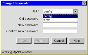 Remove: Removes (sets to null) the password for the user selected.