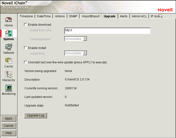 Version Being Upgraded: Each update has a version number. The version of the current update appears in this field the moment the update process begins. You cannot upgrade the proxy server to a lower version than the one currently installed.