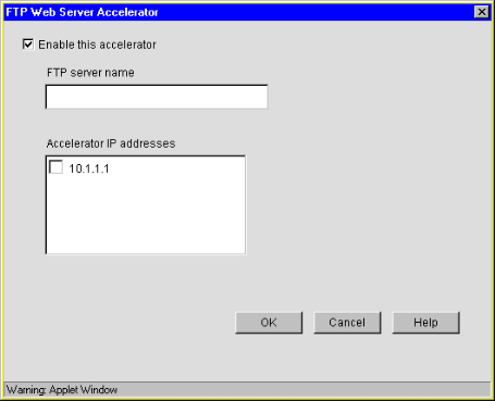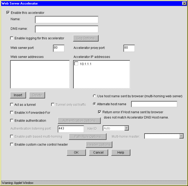 Enable This Accelerator: Specifies whether to enable the defined Web server accelerator after you have configured it. The default is Enabled.