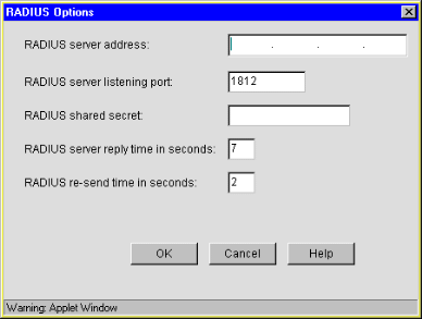 NOTE: Port 1812 is the default RADIUS server port, however, the Novell RADIUS server defaults to port 1645. It is possible for a different default port to be specified when the Novell RADIUS server is loaded.