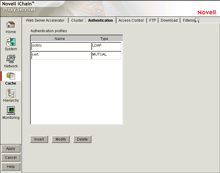 Existing Profiles: A list of the authentication profiles you create in Cache > Authentication. For more information, see Authentication Tab.