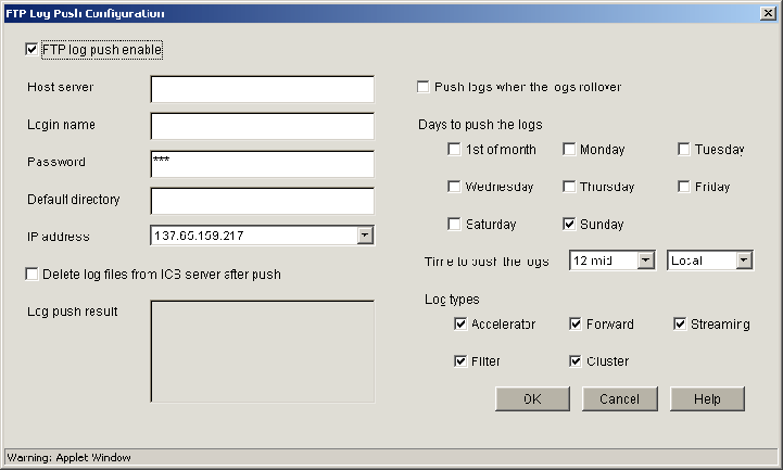 FTP Log Push Enable: If this option is checked, FTP log push is enabled.