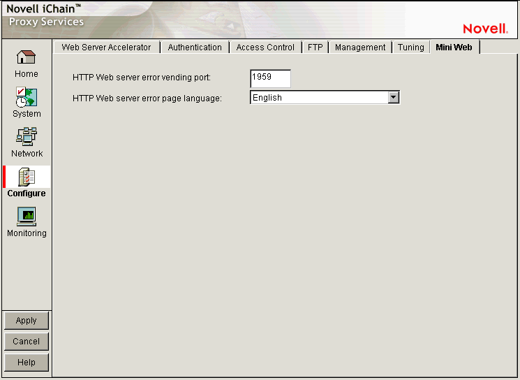The Mini Web tab lets you configure how appliance-generated error pages are vended to browsers.