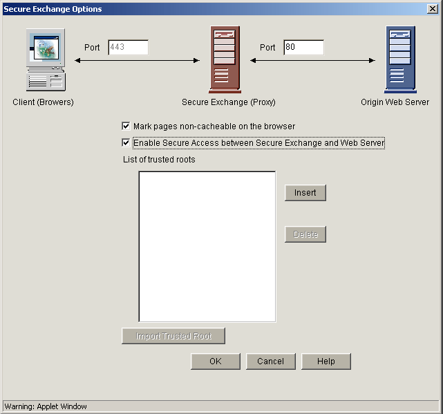 Path: Configure > Web Server Accelerator > Insert (Modify) > Secure Exchange Options
