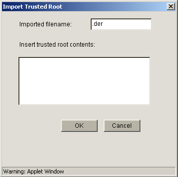 Import Trusted Root: Clicking this button opens the Import Trusted Root dialog box.