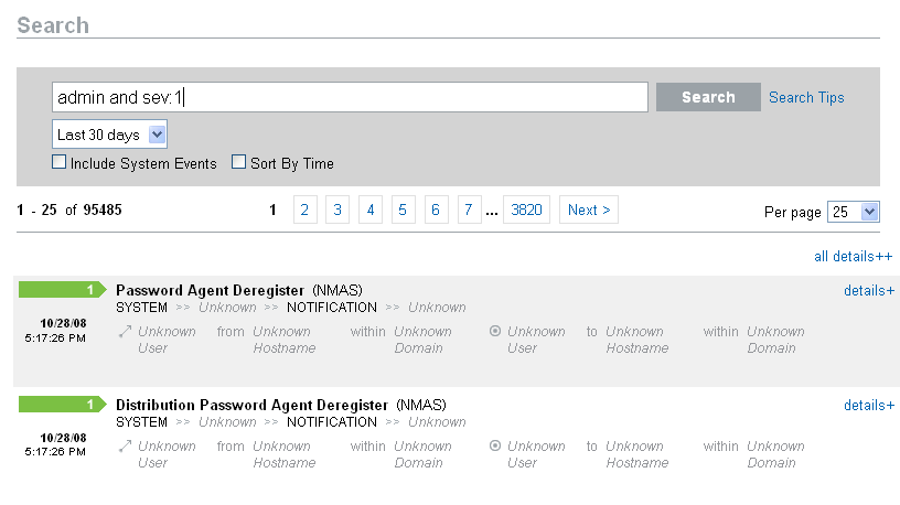 NOTE:If time is not synchronized between the end user machine and the Identity Audit server (for example, one machine is 25 minutes behind), you might get unexpected results from your search. Searches such as or are based on the end user’s machine time.